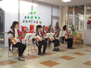 同日のお楽しみ会では、三味線ボランティア(金曜会)の演奏に聞き入り、