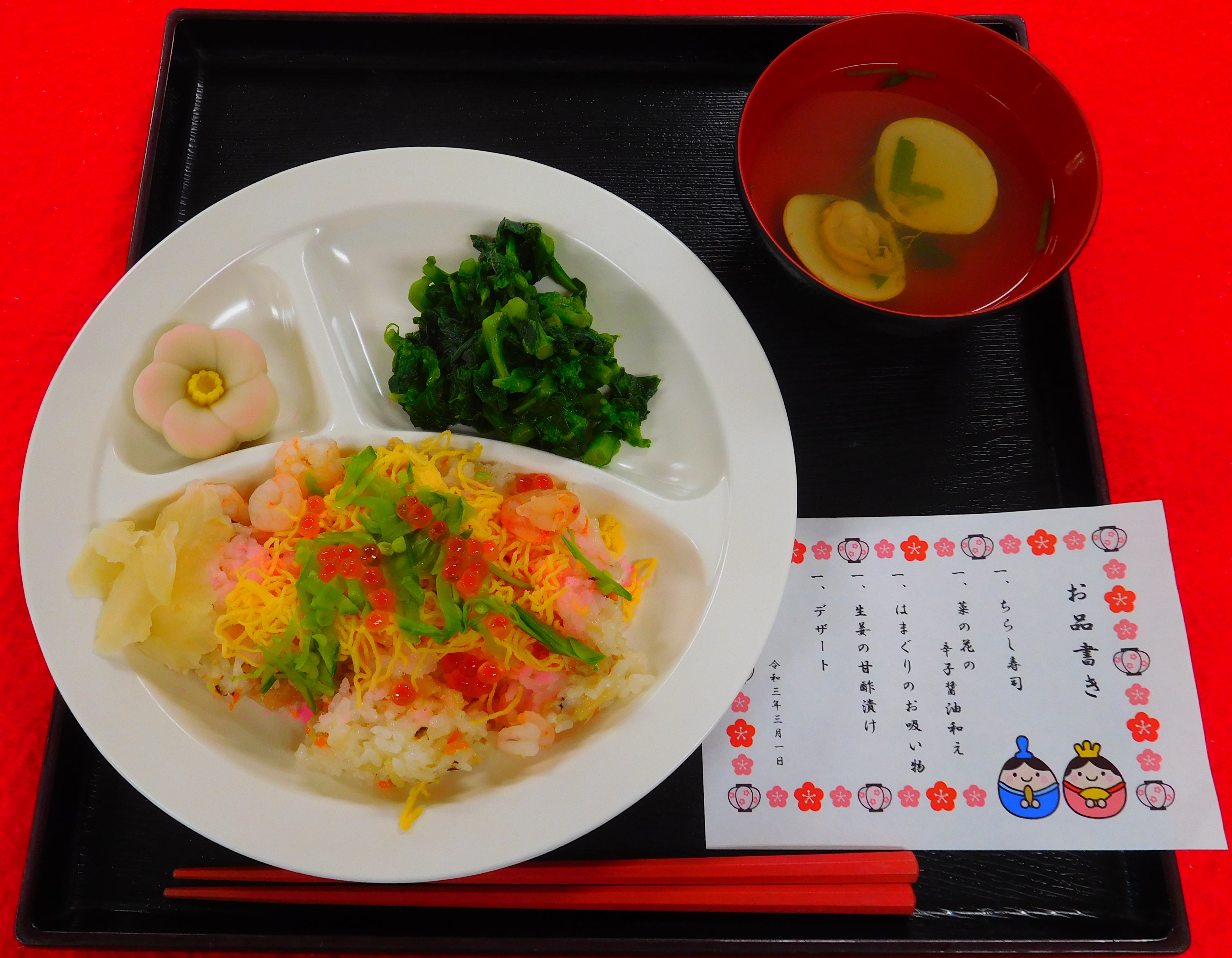 桃の節句らしい昼食で童心に返られていました